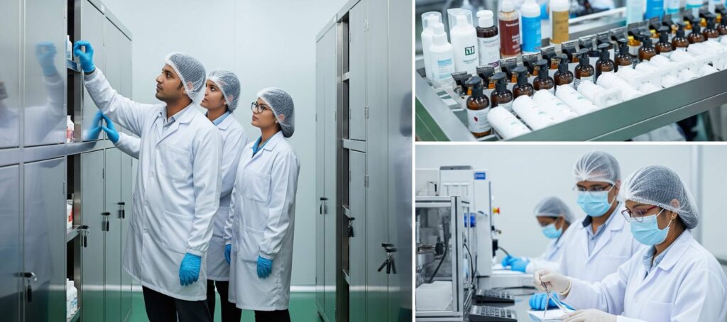 SO 22716:2007 gives guidelines for the production, control, storage, and shipment of cosmetic products. The guidelines in ISO 22716:2007 do not apply to research and development activities and the distribution of finished products.